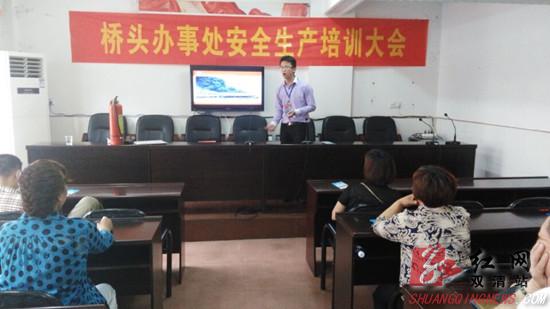 红网双清站5月18日讯(分站记者 赵绍君 通讯员 王嘉)5月14日下午,邵阳市双清区桥头街道办事处举办了一期“安全生产”、“消防安全”知识培训班。来自全办5个社区的主任和安全专干、辖区各小学校长、幼儿园负责人以及商场、宾馆、市场、电影院等人员密集场所重点安全单位负责人共60余人参加了本次培训班。桥头办要求参会人员会后立即组织开展一次安全生产隐患排查,确保辖区社会和谐稳定。