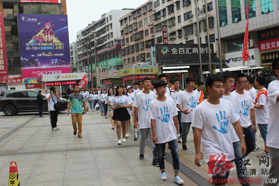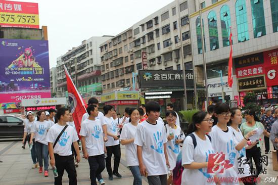 图为毅行志愿者队伍在东风路街道宣传禁毒