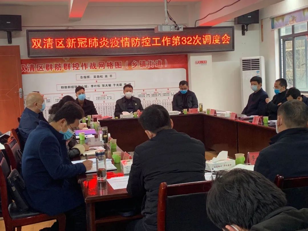 红网双清站3月6日讯(通讯员 黄思慧 刘小阳)3月4日下午,双清区新冠肺炎疫情防控工作第32次调度会在卫健局4楼会议室召开。会议分析研判当下形势,跟进安排部署疫情防控工作。区委书记吴劲松主持,区委副书记、区长肖平等区委疫情防控工作领导小组成员参加。