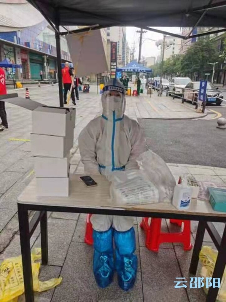 4月23日起,白璐成为九井湾社区的一名志愿者。她端坐在登记台前,仔细扫码,认真登记,积极配合“大白”们开展核酸采样。特别是面对老年人和小朋友,她总是不厌其烦解释引导登记,有效保障了小区核酸采集有序安全完成。一天下来,扫码登记上千个采样者信息。社区群众总是能透过厚厚的护目镜看到她那甜甜的笑容,焦虑烦躁仿佛一下子也减轻许多,不少老爷爷老奶奶们记住了这个高个子、笑容甜甜的女生。